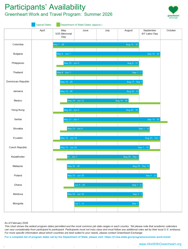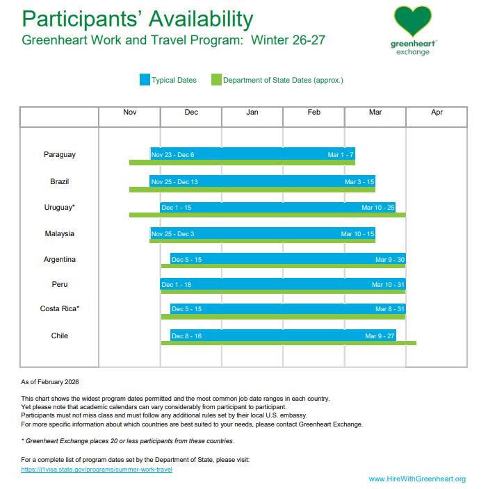 - Host organization requirements: Must have seasonal hiring needs & an interest in cultural exchange